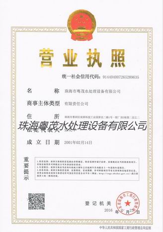 珠海市粵茂水處理設備有限公司